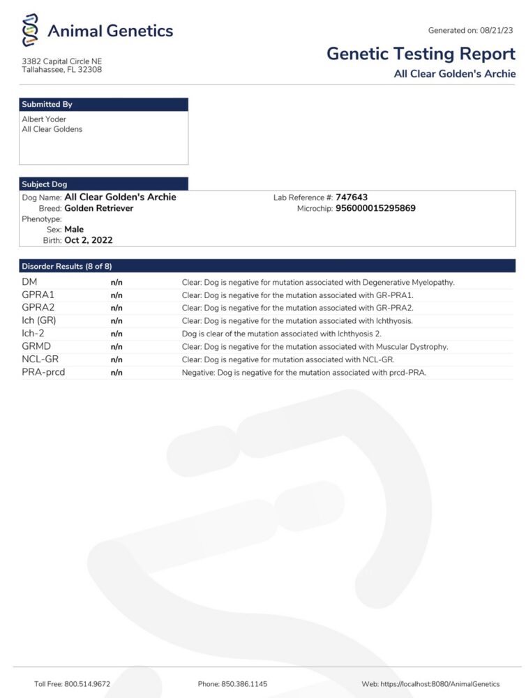 Clear | GR-PRA2 (Progressive Retinal Atrophy in Golden Retrievers) |