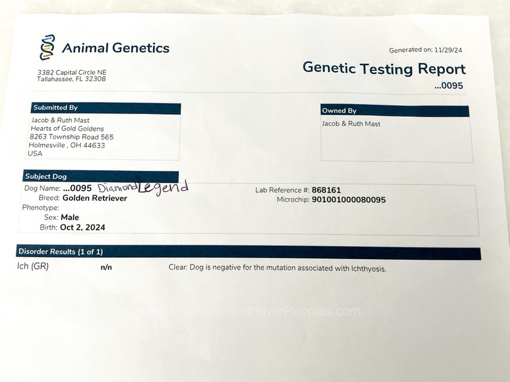 Legend is ICH clear (verified by testing). He is clear for the remainder of the panel by parentage (Diamond x Dixie)