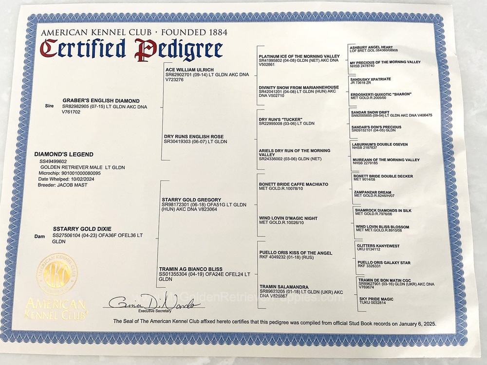 With deep European roots and a heart that’s just as impressive as his pedigree. His name is inspired by his distinguished sire, Graber’s English Diamond, whose lineage traces back to the Netherlands, passing down classic structure, confidence, and timeless elegance. From his beautiful mom, Starry Gold Dixie, Legend inherits a rich heritage rooted in Hungary and Russia, blending strength, balance, and gentle expression into one exceptional boy.