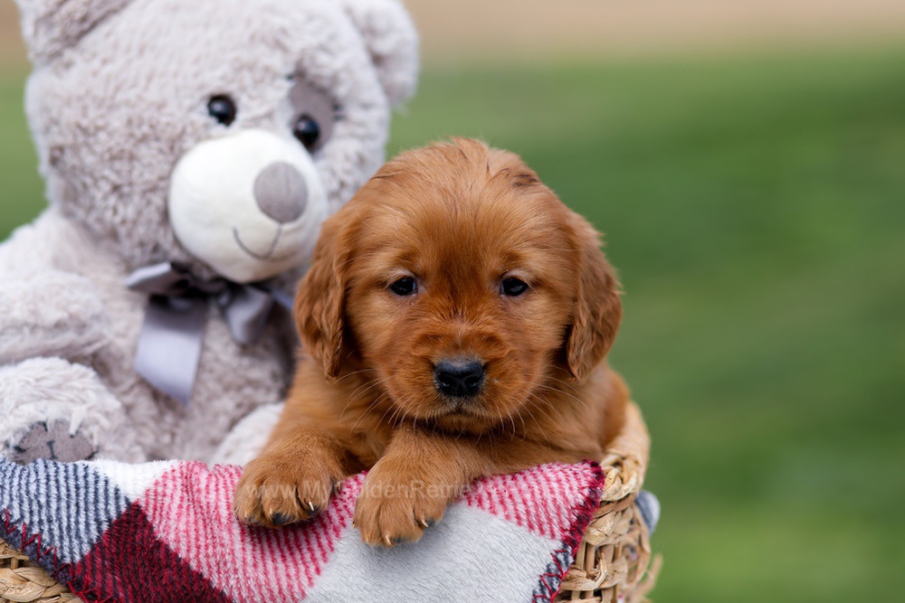 My sire Prince is a striking Fox Red Golden and my mother Carma is a lovely med/dark Golden (pictures of both below). Both parents are DNA health-tested and clear!