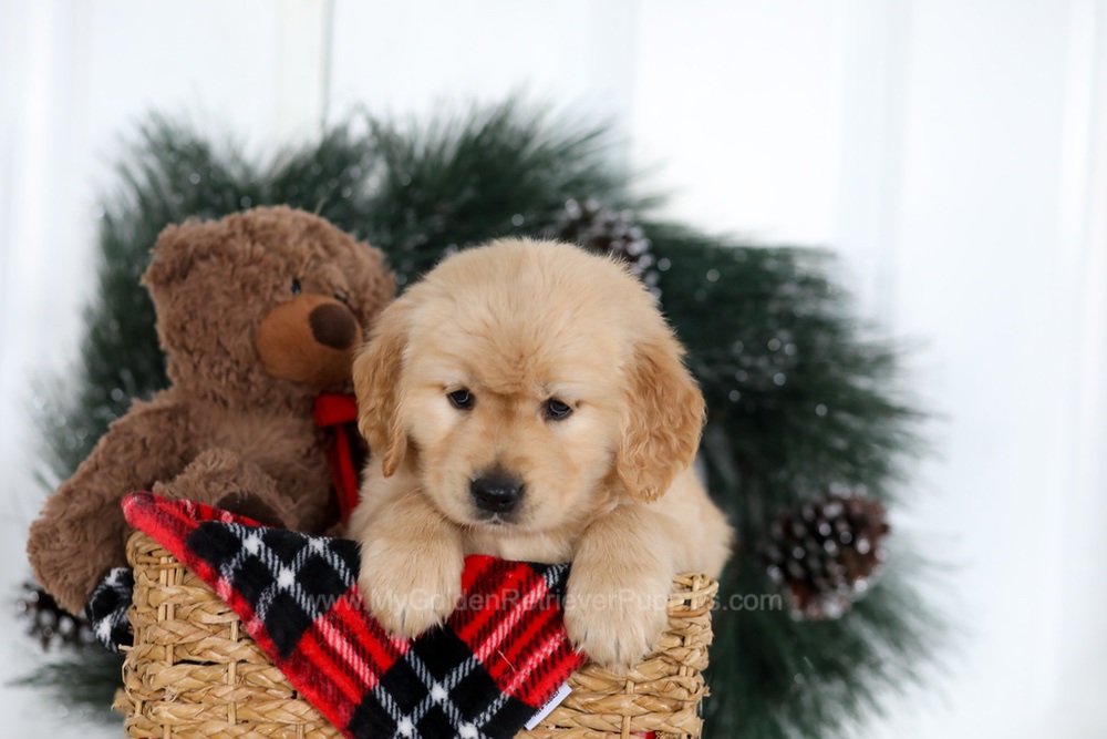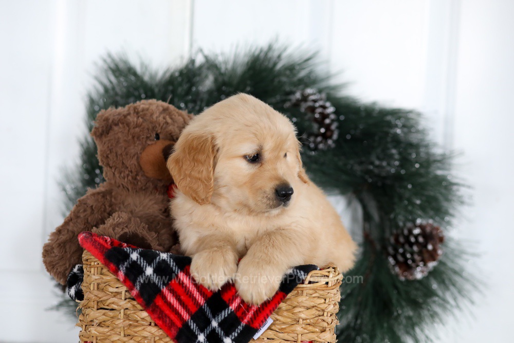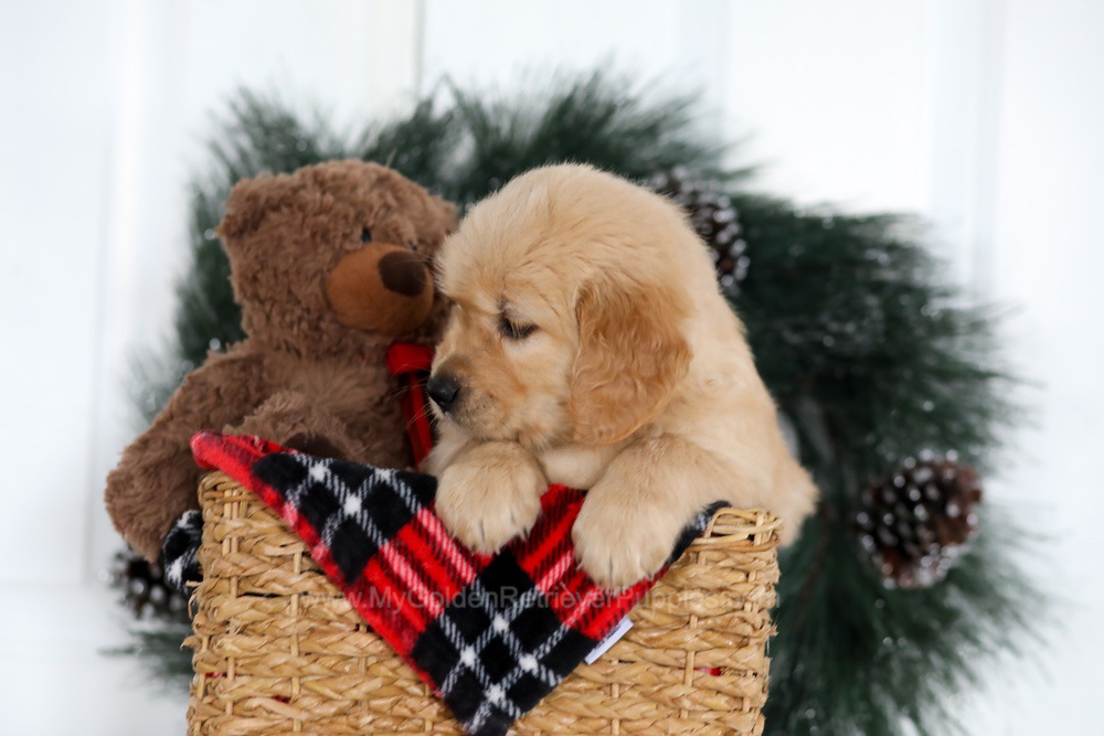 My sire Mack is cream Golden who is OFA Hip & Elbow certified, and my mother Patsy is a sweet dark Golden girl and great momma who is also OFA Hip & Elbow certified. Both of my parents are DNA health-tested and are here on the premises!
