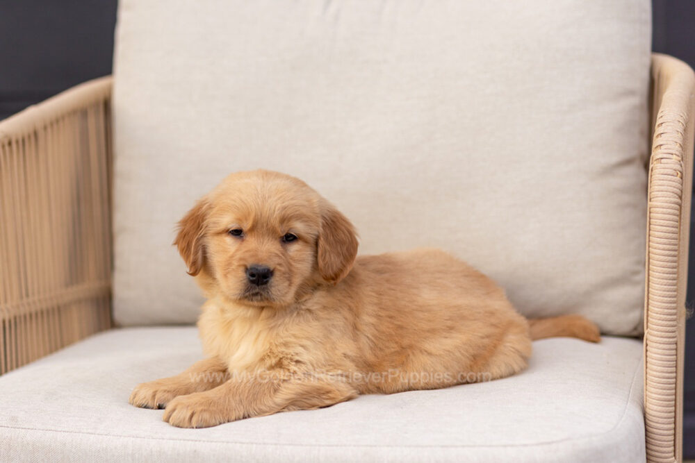 "Getting our girl, Lola, from My Golden Retriever Puppies was a great decision!! Despite being in Texas, I felt like I was included in the puppy picking process with several pictures, videos, and personality feedback from the in-home breeder, and Lola was everything I asked for–a spunky, friendly girl that’s ready to hike and fetch all day but also ready to cuddle and chill."