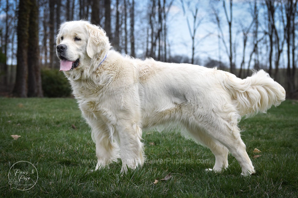 My sire Lincoln is a cool dark golden, OFA hip, elbow and heart certified. My mother Angel is a stunning cream (see photos of both parents below) OFA heart certified. Both of my parents have been DNA health-tested to be sure I am free of common genetic disease!