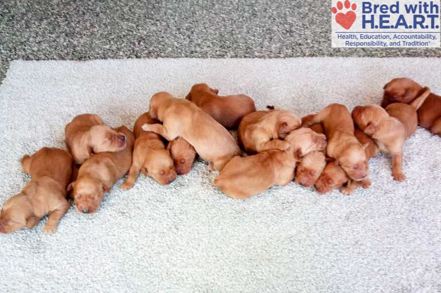Presenting this beautiful dark Golden litter ofΒ 5 boys and 4 girls from the most gorgeous Anson β€οΈ Zoe, ready as early as Dec 2nd (or later closer to Christmas is ok too)! π