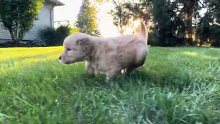 My sire Montae is a poised dark Golden who is OFA Hip, Elbow, Patella and Heart certified.. My mother Rainelle is a lovely medium golden who is OFA Hip, Elbow, Patella and Heart certified. Both of my parents are on site and have been genetically health tested. I was raised with care in our loving family environment and has been ENS stimulated from day 3-16.