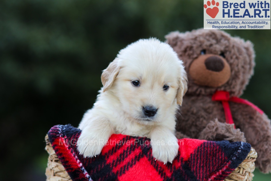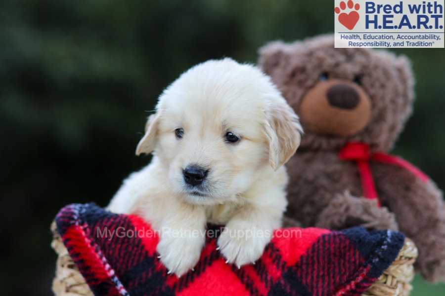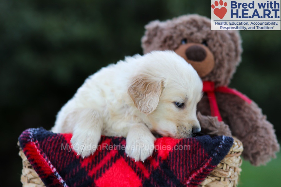 • "Getting our girl, Lola, from My Golden Retriever Puppies was a great decision!! Despite being in Texas, I felt like I was included in the puppy picking process with several pictures, videos, and personality feedback from the in-home breeder, and Lola was everything I asked for–a spunky, friendly girl that’s ready to hike and fetch all day but also ready to cuddle and chill."