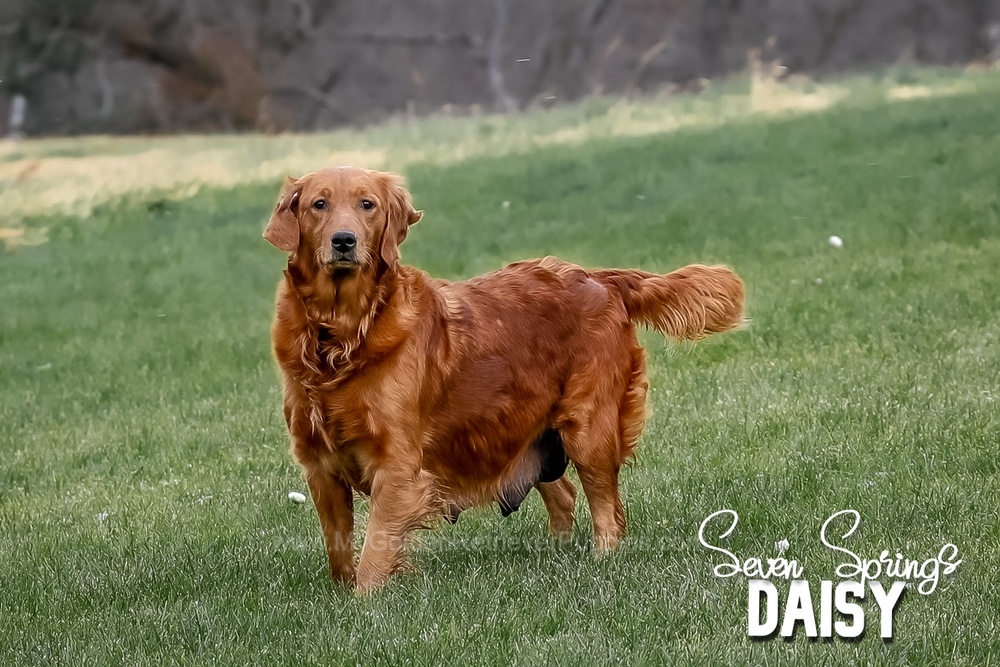 My sire Roscoe is a handsome English Cream Golden and my mother Daisy is a graceful dark golden (both pictured below). Both of my parents are DNA health-tested.