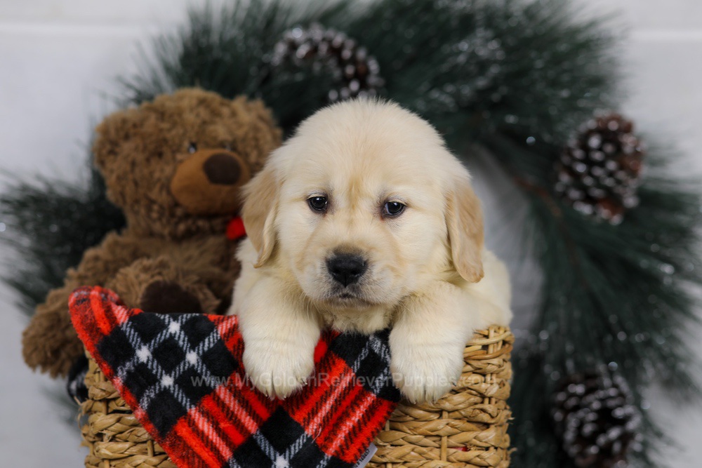 My sire Tommy has his OFA Hip, Elbow, Heart, Patella, and Eye certifications along with championship bloodlines. My mother Libby is a graceful, sweet light golden girl. Both of my parents have been genetically health-tested and are here on the premises. I was raised with care in our loving family environment and have been ENS trained from day 3 to 16.