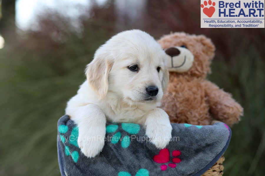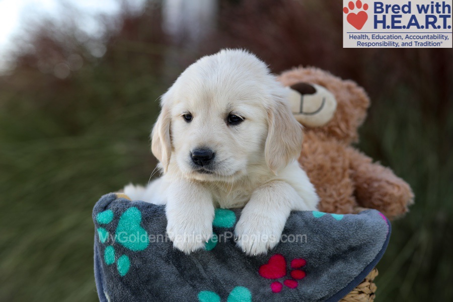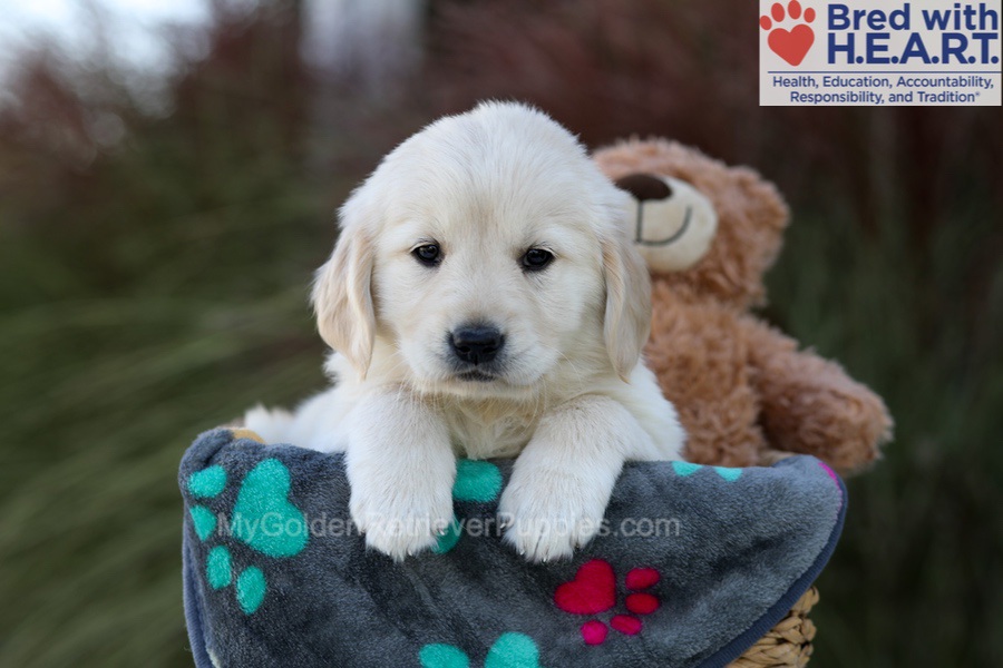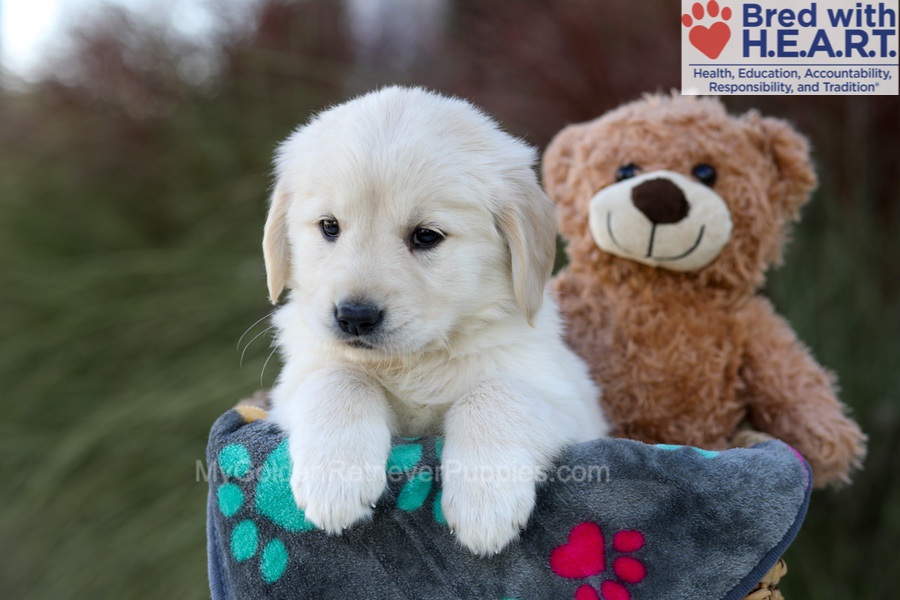 My sire Tommy has his OFA Hip, Elbow, Heart, Patella, and Eye certifications along with championship bloodlines. My mother Happy Abby is a beautiful light golden girl who is OFA Hip, Elbow, Heart, Patella, Eye and certified. Both of my parents have been genetically health-tested and are here on the premises.
