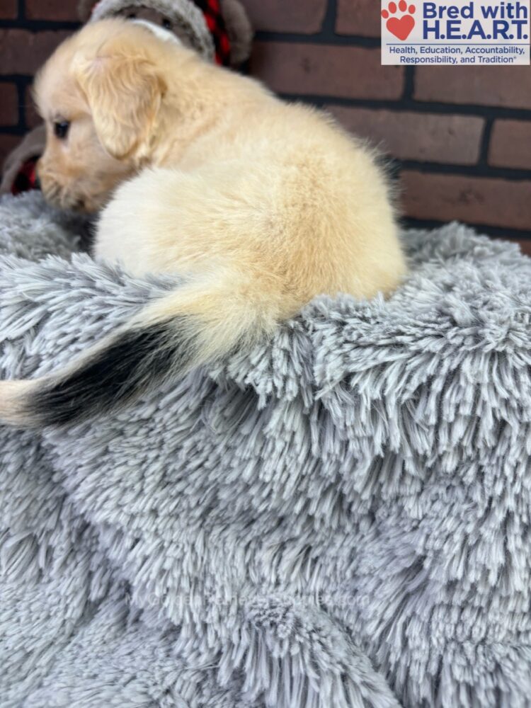 • "Getting our girl, Lola, from My Golden Retriever Puppies was a great decision!! Despite being in Texas, I felt like I was included in the puppy picking process with several pictures, videos, and personality feedback from the in-home breeder, and Lola was everything I asked for–a spunky, friendly girl that’s ready to hike and fetch all day but also ready to cuddle and chill."