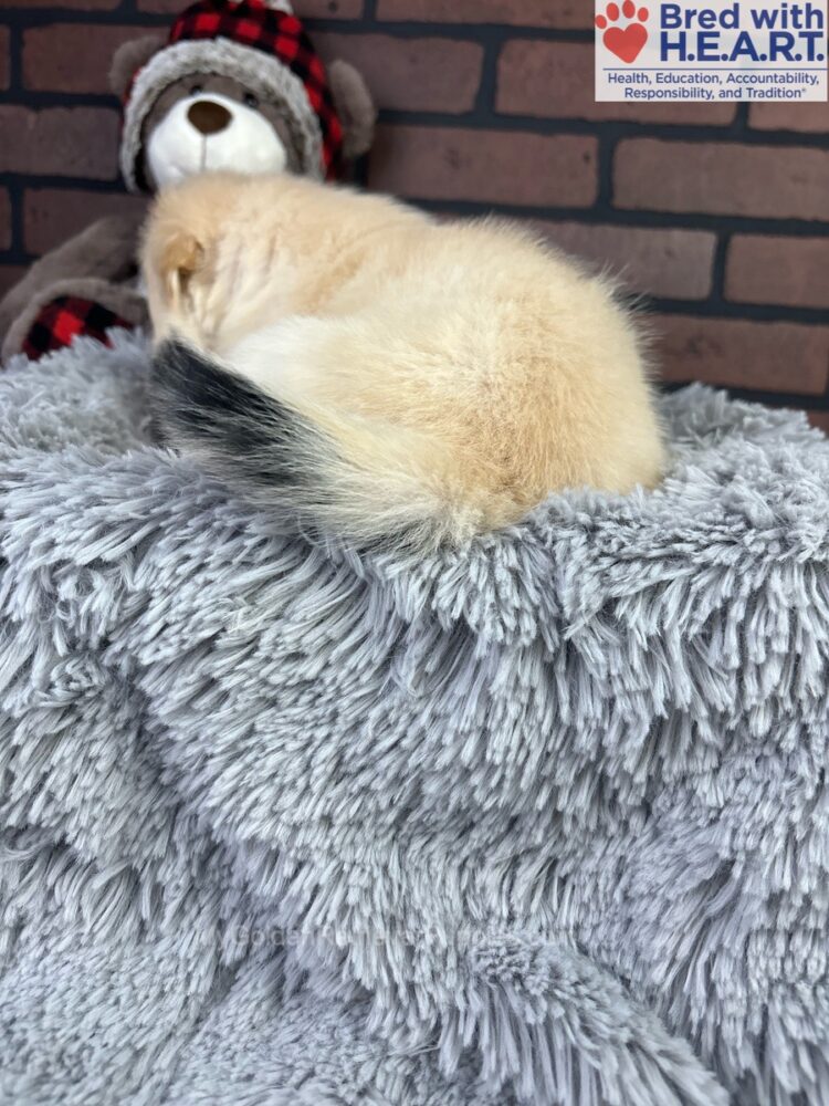 Hi, I’m Jingles! I’ve got a special little surprise — a big black patch on my tail that makes me look like I dipped it in ink! My vet says it’s just a harmless somatic mutation (nothing hereditary at all), so it just makes me uniquely me! I can’t wait to show you my happy wiggles and my one-of-a-kind golden charm!