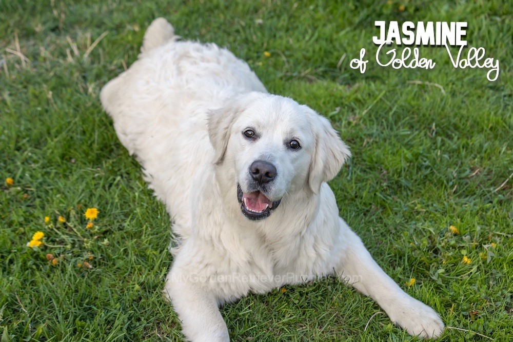 Dad Mason is a handsome red golden who weighs 90 lbs and is very spoiled. He is genetically clear as well as OFA Hip, Elbow and Patella tested and has good hips. Mom Jasmine is a light golden who is very friendly and playful.