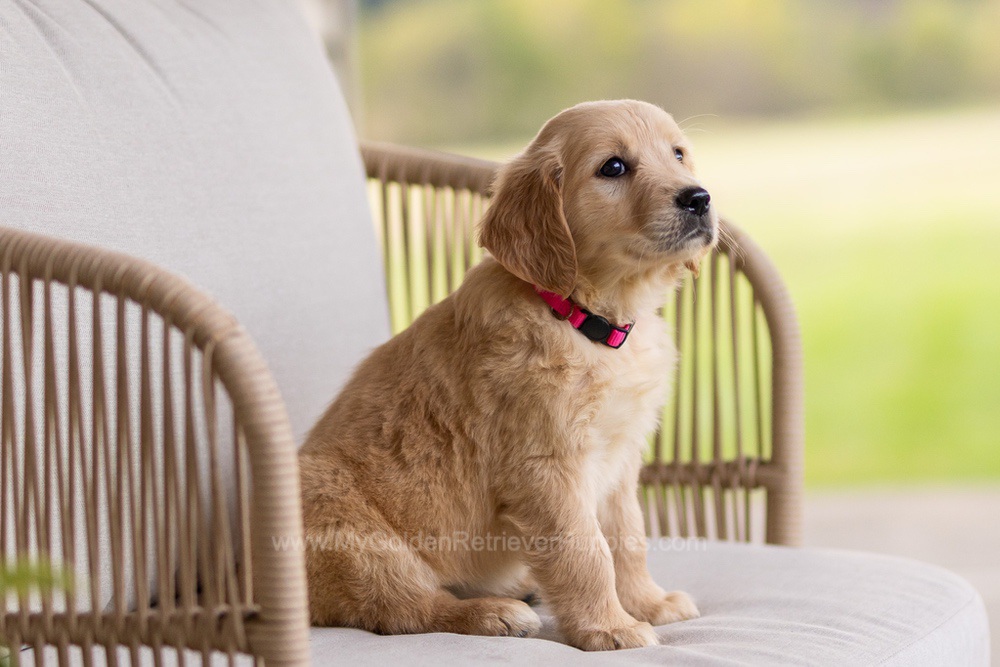 "Getting our girl, Lola, from My Golden Retriever Puppies was a great decision!! Despite being in Texas, I felt like I was included in the puppy picking process with several pictures, videos, and personality feedback from the in-home breeder, and Lola was everything I asked for–a spunky, friendly girl that’s ready to hike and fetch all day but also ready to cuddle and chill."