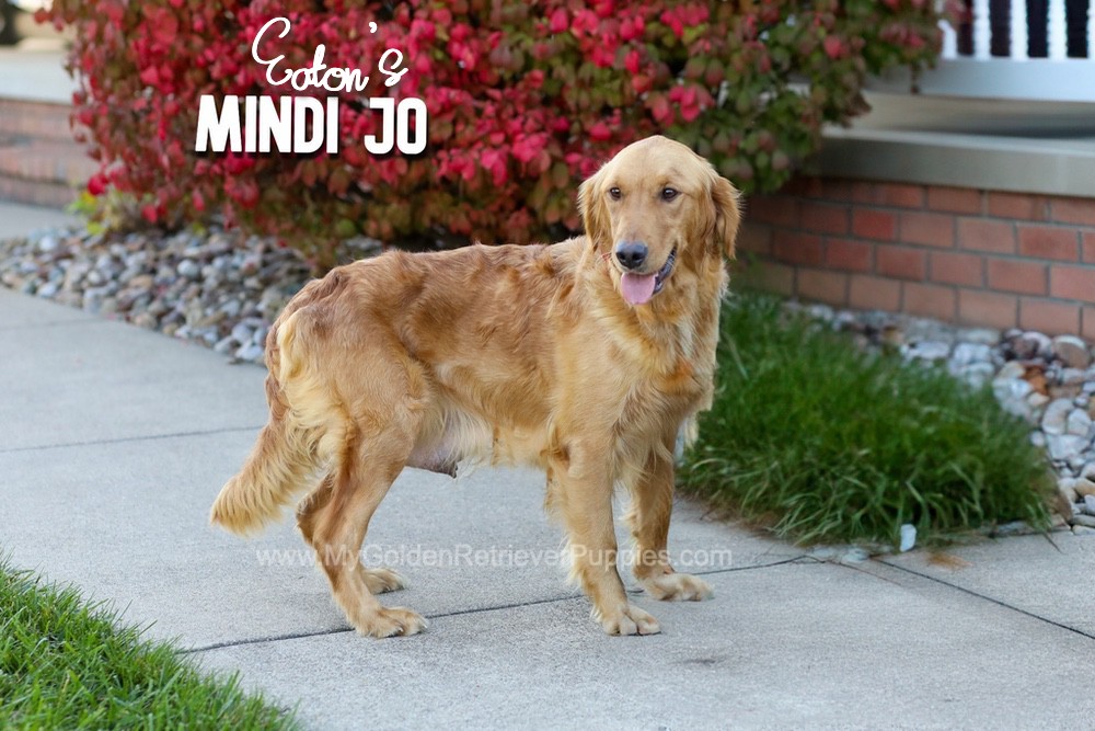 The sire Brody is a handsome medium-light golden color with a friendly personality who is OFA hip, elbow and heart certified. The mother Mindi is a sweet medium golden. Both parents are DNA health-tested.