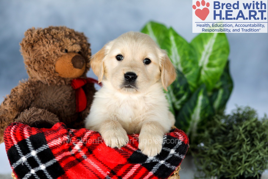 The sire Tommy has his OFA Hip, Elbow, Heart, Patella, and Eye certifications along with championship bloodlines. The mother Dutchess is a graceful, light golden girl who is OFA Hip, Elbow, Heart, Patella, and Eye certified. Both of my parents have been DNA health-tested and are here on the premises!