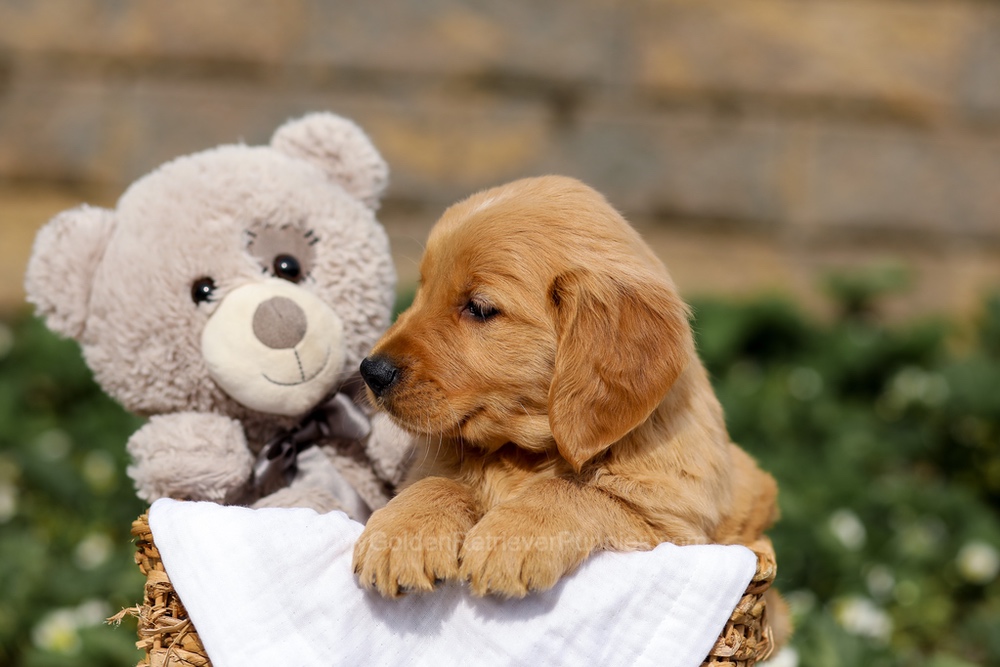My dad Mason is a handsome red golden who weighs 90 lbs and is very spoiled! He is OFA Hip, Elbow and Patella certified. My mother Charity (pictured below) is a beautiful red Golden who is Land have both been genetically health-tested. I was raised with care in our loving family environment and am excited to join my forever family!