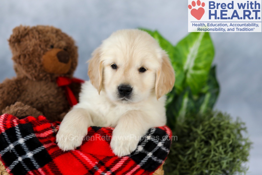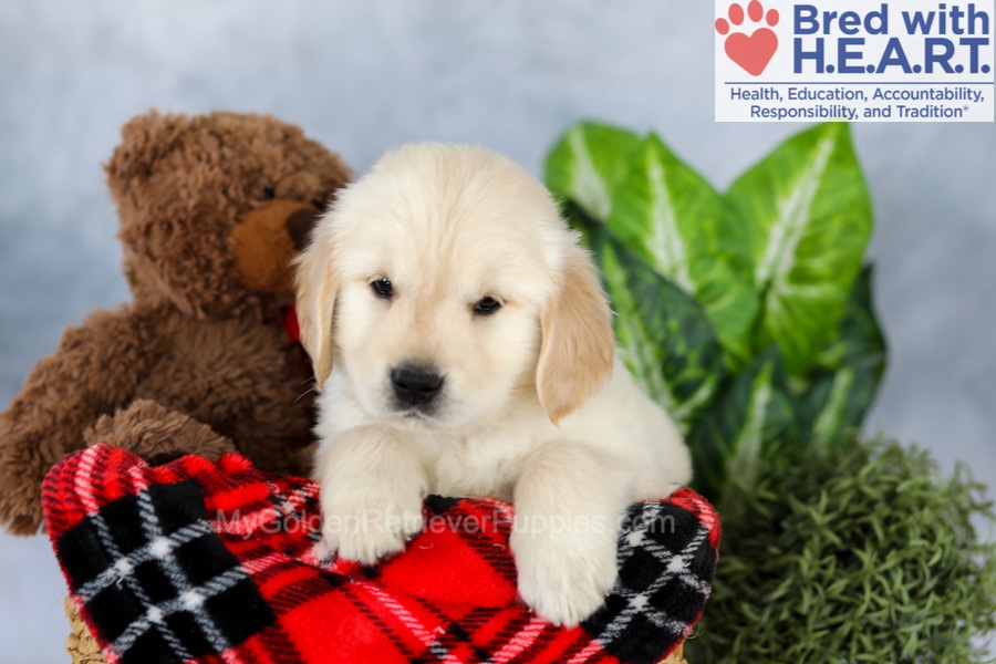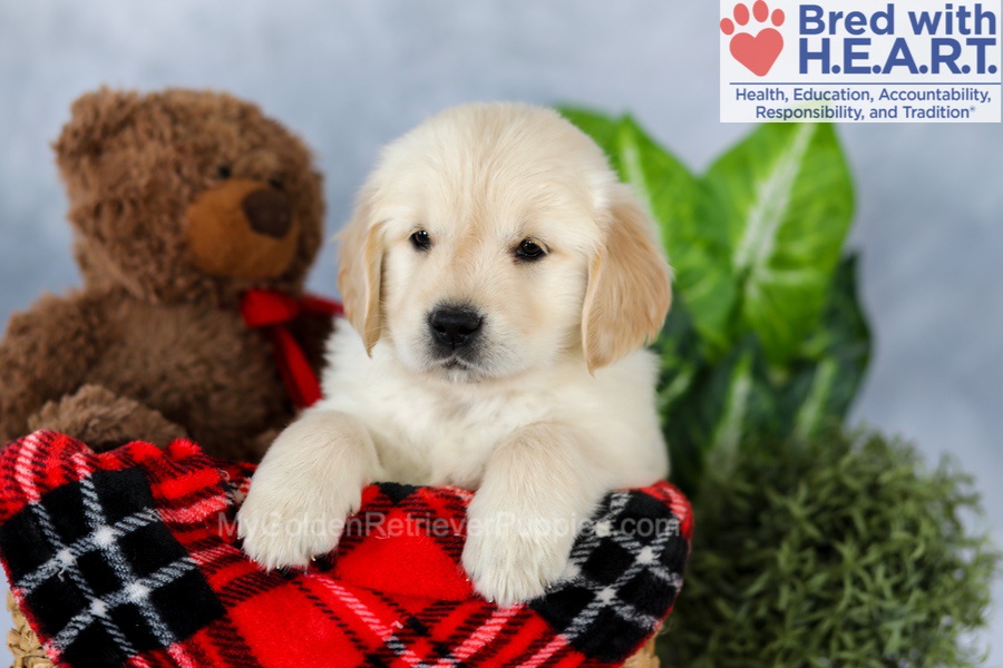 The sire Tommy has his OFA Hip, Elbow, Heart, Patella, and Eye certifications along with championship bloodlines. The mother Dutchess is a graceful, light golden girl who is OFA Hip, Elbow, Heart, Patella, and Eye certified. Both of my parents have been DNA health-tested and are here on the premises!