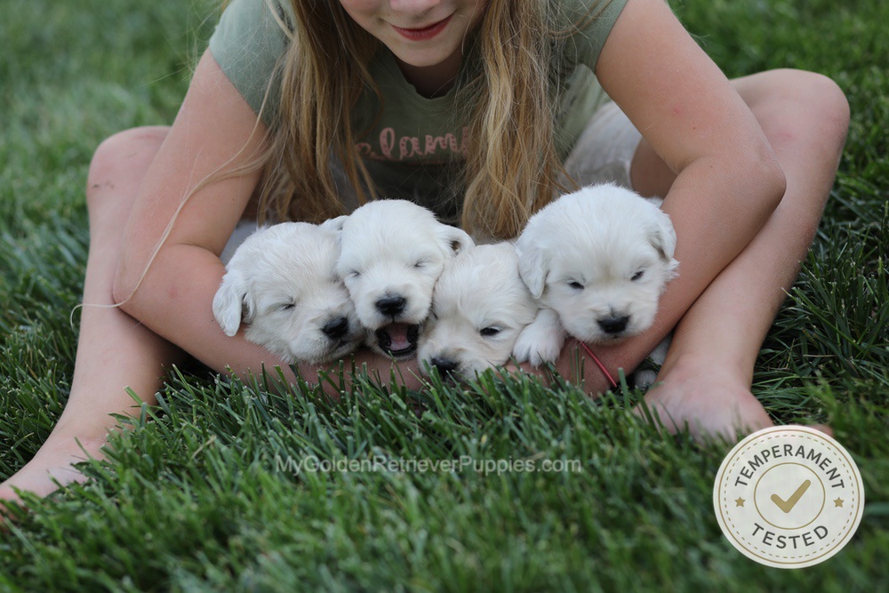 "Getting our girl, Lola, from My Golden Retriever Puppies was a great decision!! Despite being in Texas, I felt like I was included in the puppy picking process with several pictures, videos, and personality feedback from the in-home breeder, and Lola was everything I asked for–a spunky, friendly girl that’s ready to hike and fetch all day but also ready to cuddle and chill."