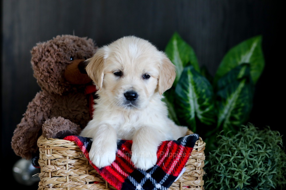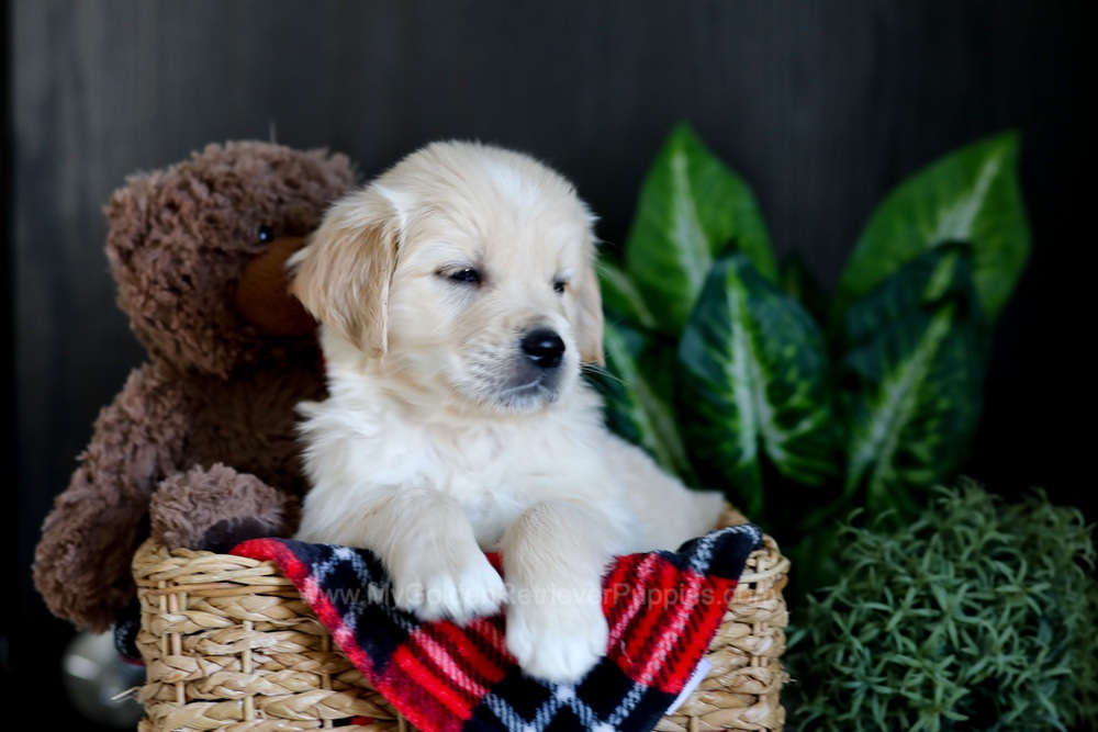 My sire Misha is a Junior Champion with an impressive show pedigree. My mother Siesta is a sweet golden girl with OFA Hip, Elbow, Heart and Patella certifications. I was raised with care in a loving family environment and have been ENS trained from day 3 to 16.