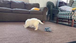 My sire Misha is a Junior Champion with an impressive show pedigree. My mother Siesta is a sweet golden girl with OFA Hip, Elbow, Heart and Patella certifications. I was raised with care in a loving family environment and have been ENS trained from day 3 to 16.
