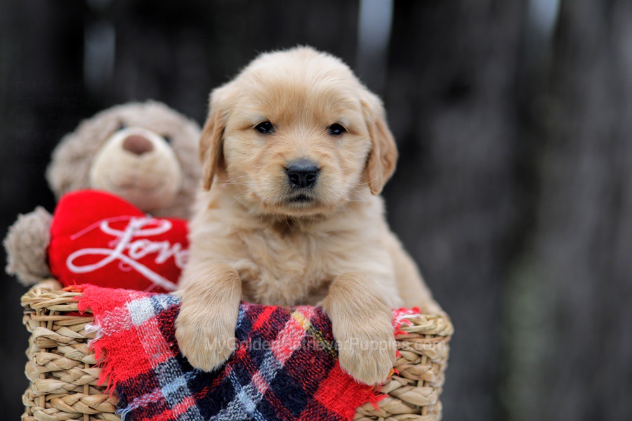 This handsome boy is Teddy! This little guy will definitely brighten up your days. Wouldn’t you just love to make this sweet pup yours today? He is quite ready to shower you with lots of hugs and puppy kisses. His handsome sire Rover is a beautiful dark red golden that has been genetic tested. His mother Milly is a friendly and gentle medium/dark colored golden that has also been genetic tested and is on the premises. Teddy was raised with care in our loving family environment and has been ENS stimulated from day 3 to 16. You are most welcome to come for a visit!