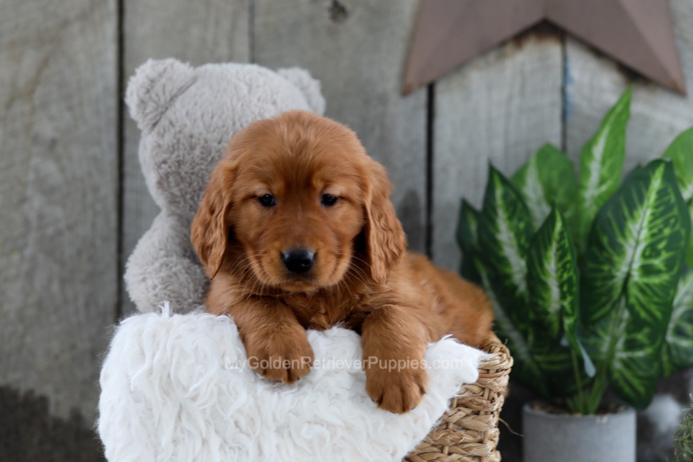 "Getting our girl, Lola, from My Golden Retriever Puppies was a great decision!! Despite being in Texas, I felt like I was included in the puppy picking process with several pictures, videos, and personality feedback from the in-home breeder, and Lola was everything I asked forβa spunky, friendly girl thatβs ready to hike and fetch all day but also ready to cuddle and chill."